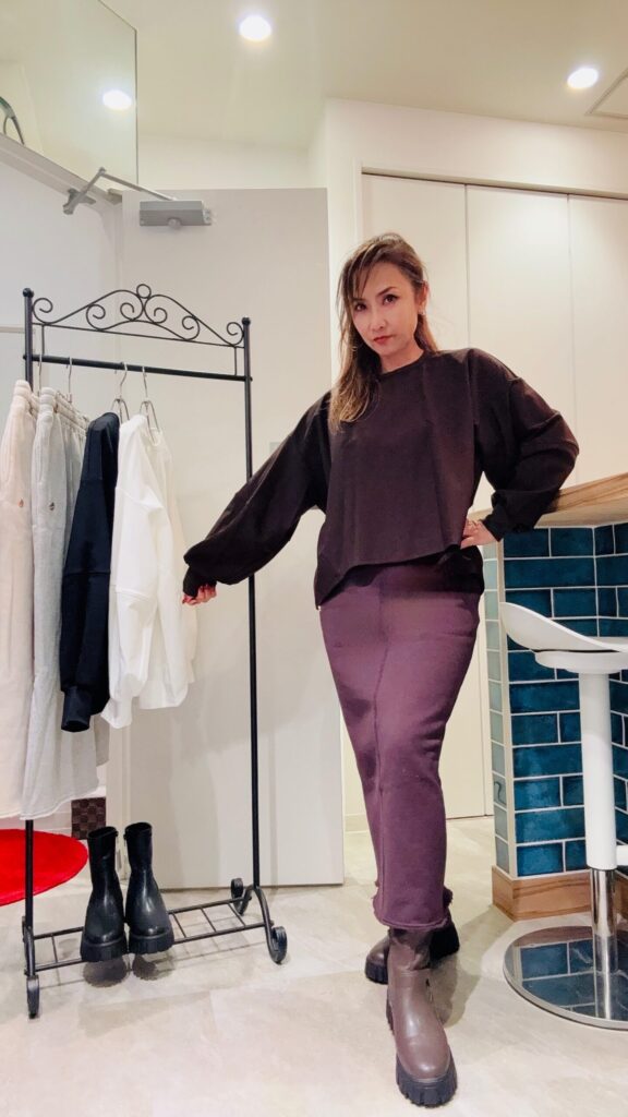 トップスもロングスカートも表面はスエット素材でサラッとした感じですが、裏起毛になっているので寒い冬でも暖かく過ごすことが出来ます。 トップスはドロップショルダー…