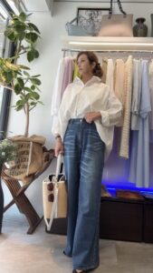 ボリューム感のあるワイドパンツと合わせてますが綺麗めなスカートやパンツなんでも合わすことができますよ。
